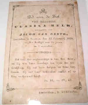 Alias: Klaasje Dirks Melk 34 Geboren: 9 Oktober 1815 - Zaandam Gedoopt: Overleden: 22 Februari 1850 - Zaandam 192 Begraven:Partner: Jacob Jacobs van Sante [340] (1816- ) Huw: 13 September 1840 - Zaandam 24