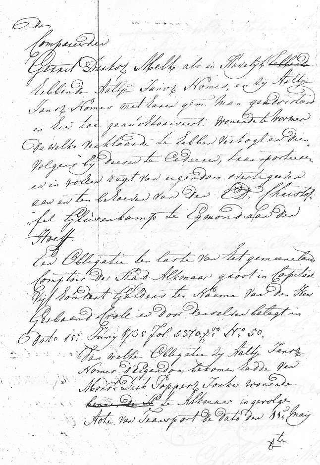 Notarisakten: 6 Op 6-7-1659 te Womer is een akte opgemaakt bij het aangaan van het huwelijk. Zinssnede ervan zijn: