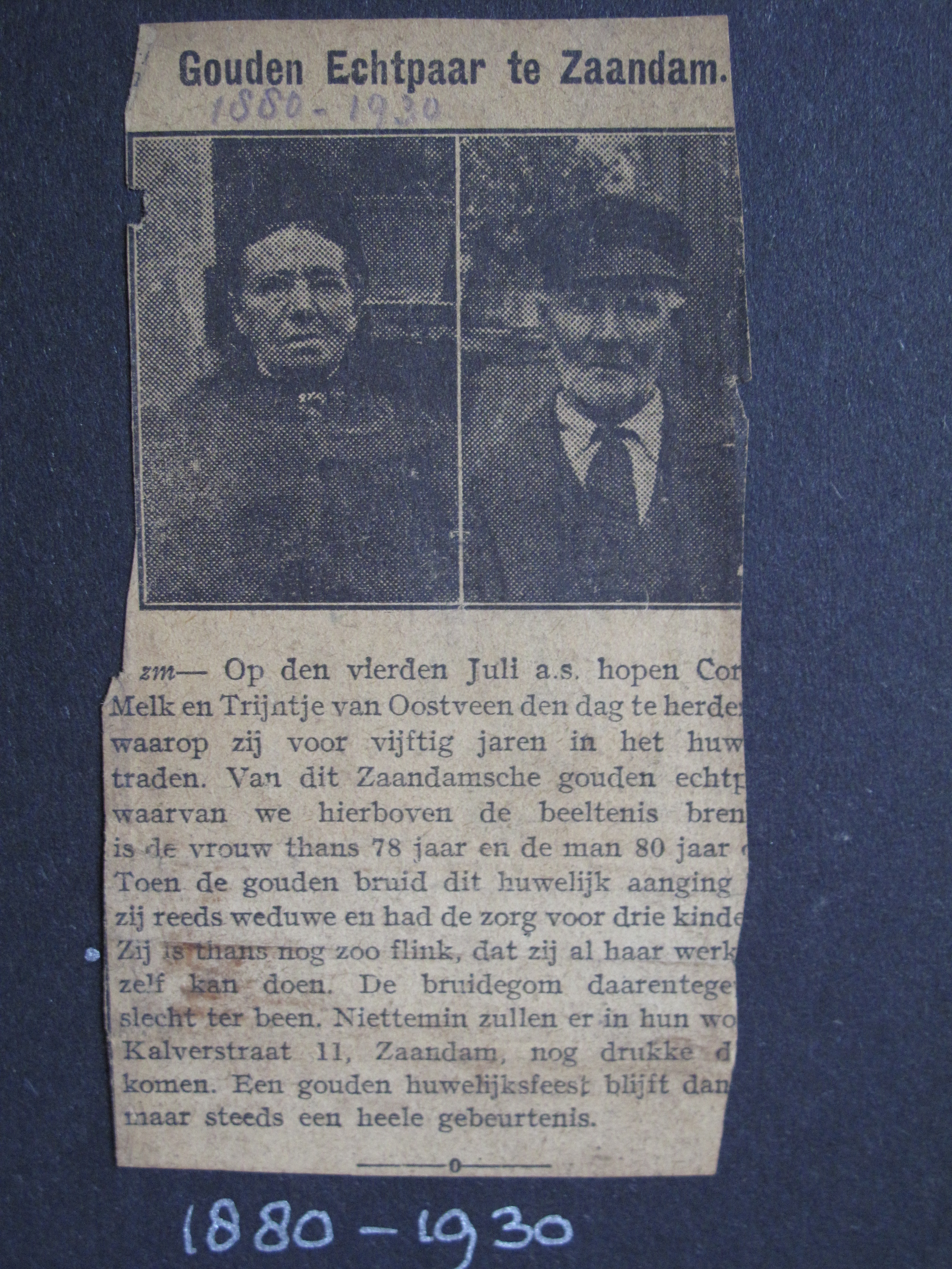HuwelijksnotitiesBruidegom Pieter Hendrik Melk Beroep bruggenschilder Geboorteplaats Koog aan de Zaan Leeftijd 21 Bruid Femmigje Zomer Geboorteplaats Staphorst Leeftijd 21 Vader van de bruidegom Pieter Melk Beroep Loodgieter Moeder van de bruidegom Grietje Brouwer Vader van de bruid Jan Zomer Beroep spoorwegarbeider Moeder van de bruid Johanna Venema