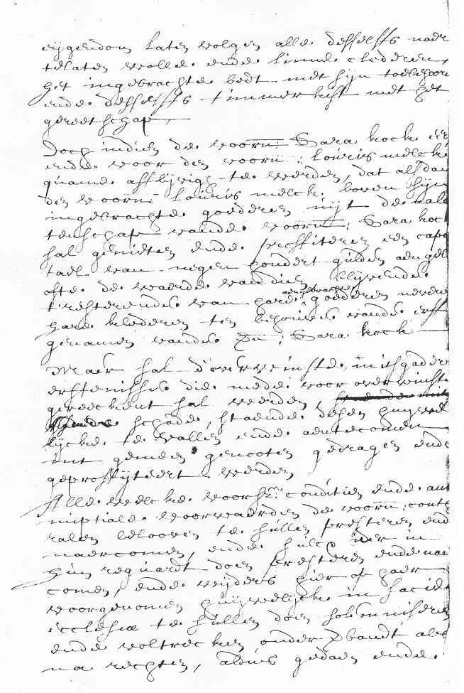 Doch indien Sara overlijdt dan mag Louris boven sijne ingebrachte goederen uijt de nalatenschap van Sara een capitael van 900 Carolus gulden ende den klederen te behouden vande erfgenaemen van Sara.