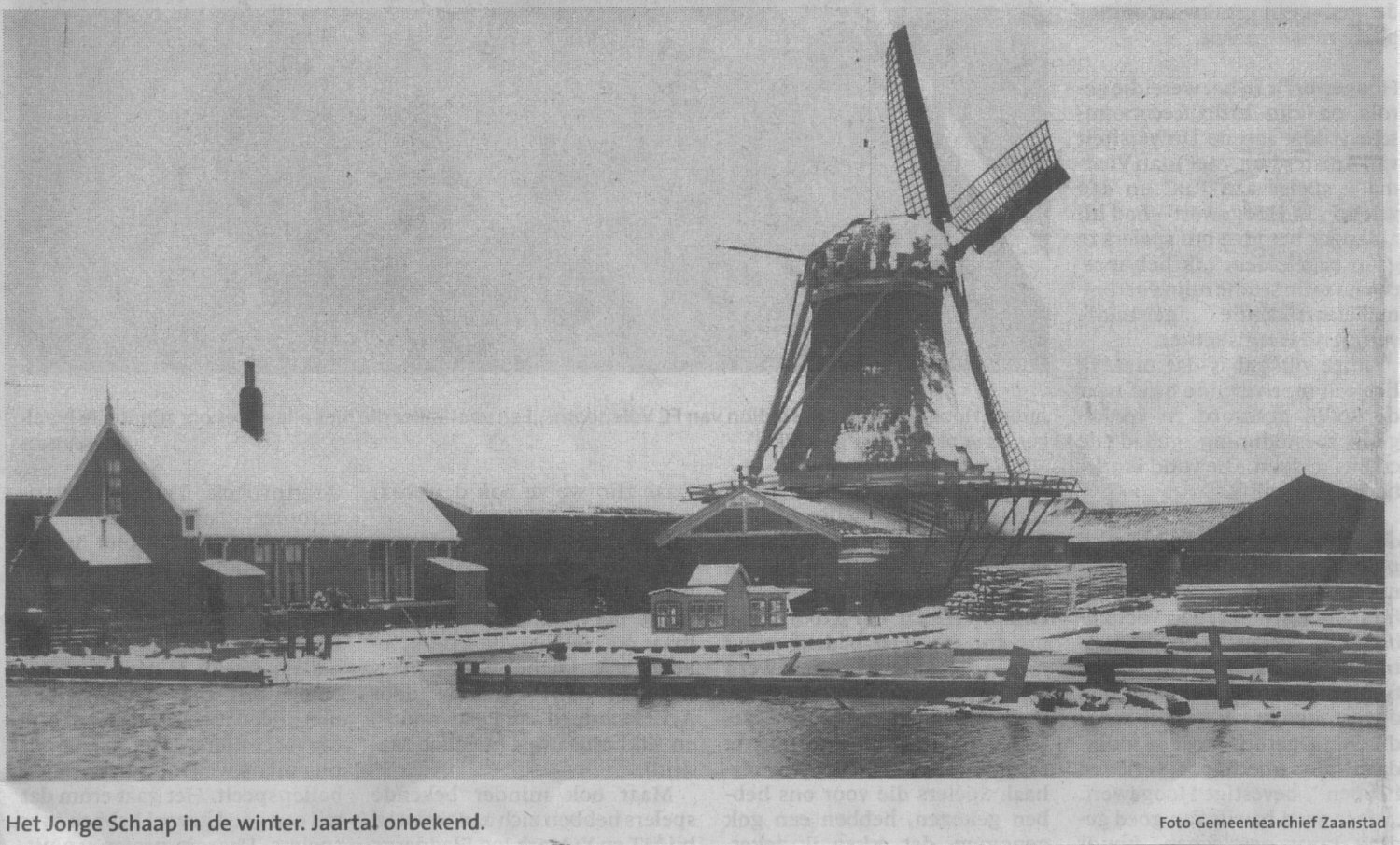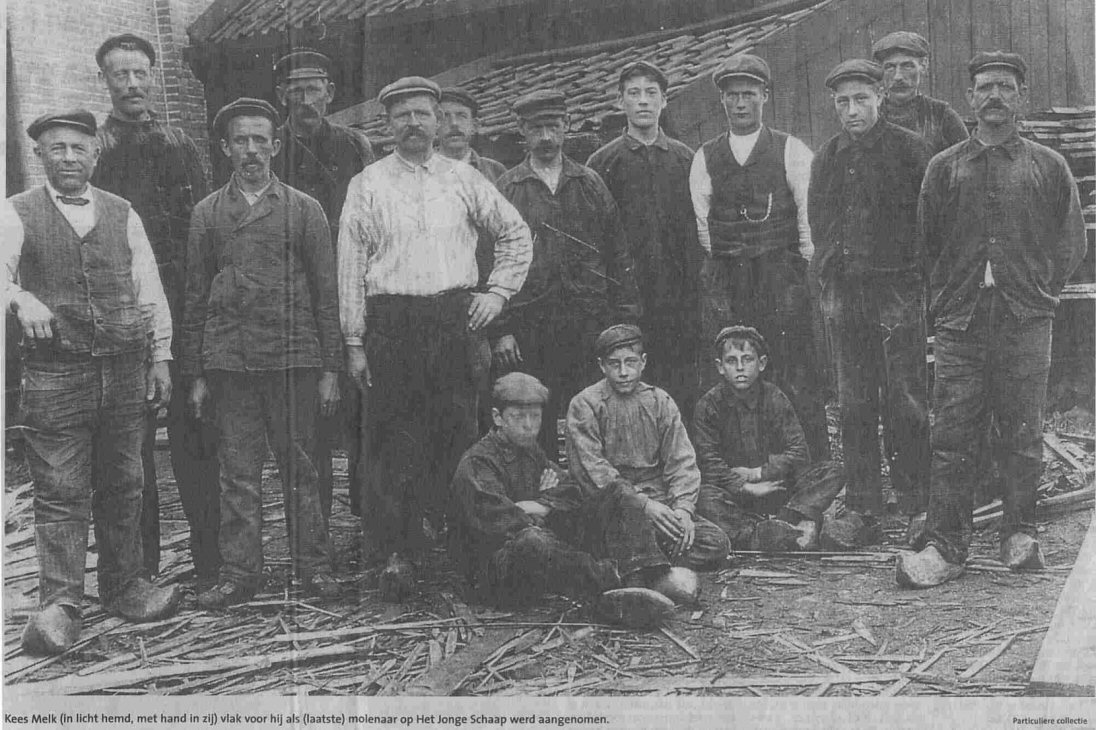 Achter het raam, in de zon, tussen voorwerpen van zelf gedraaid hout en schilderijtjes van molen Het Jonge Schaap, leunt de 94-jarige Lammert Melk achteruit. Broos maar blij. Binnenkort keert het verloren 'Skaepie' uit zijn kinderjaren weer. Al dagen zit hij zo voor zich uit de toespraak te repeteren voor vanmiddag, als hij het bouwbord op de Zaanse Schans heeft onthuld. Staand wil hij spreken, 'want dat komt beter over'. En zoals hij daar zit, maakt zijn verhaal al zo'n indruk: ,,Dat ik als jongste zoon van Kees Melk, de laatste molenaar twee๋nzestig jaar na de sloop hier mag wezen om getuige te zijn van de voorbereiding om Het Jonge Schaap opnieuw te bouwen.''.